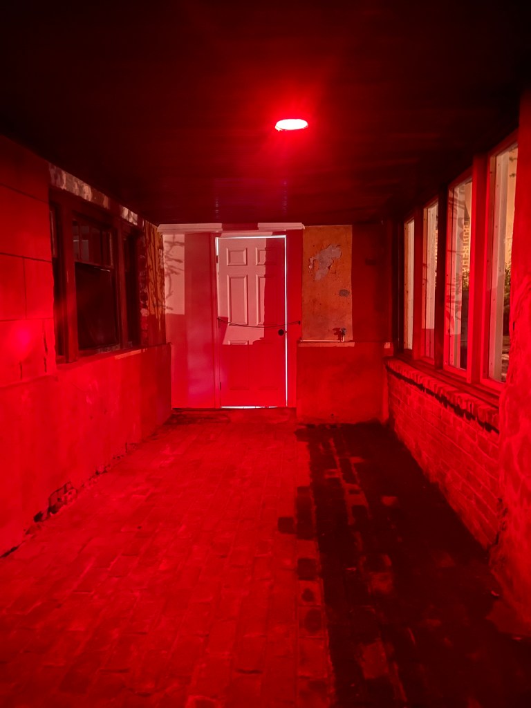 Video: The pillar to the left of the chair in the beginning is where I saw moving shadows that I did not feel were attributed to our group. Those were never caught in the video. However, at about 0:45, the lighting anomalies begin. This was shot with an iPhone, no additional lighting sources. The voice you hear is Sorrel Weed house guide, Jovi.