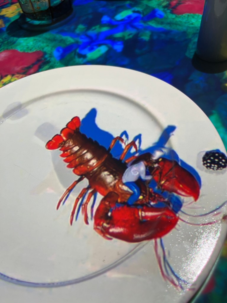 First of all, what is Le Petit Chef, exactly? It’s a specialty dining restaurant on some Celebrity ships that costs anywhere from $55-$60 pp and boasts an unusual feature – a tiny chef shows up on your plate and prepares your meal!