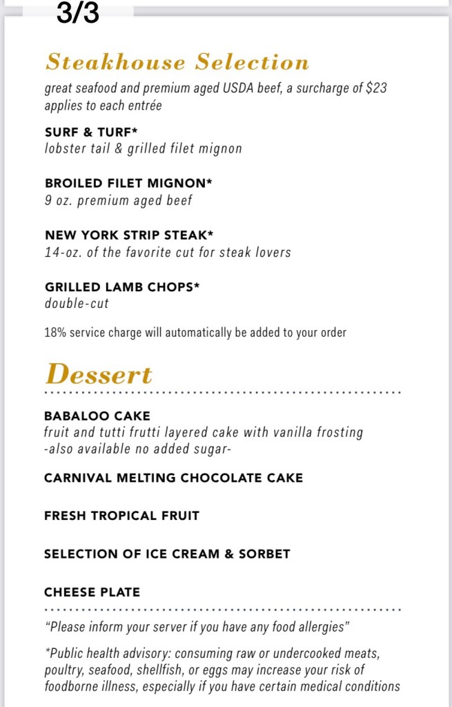 While Carnival is known for being a more “fun” than luxe cruise experience, they rarely fail to deliver at dinner time. Among my favorite food at sea, they tend to not emphasize up-charge specialty dining options as much as other lines do. Instead, Carnival targets their effort on the main dining room — and it shows.
