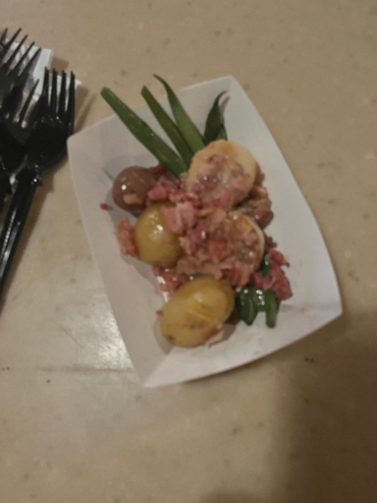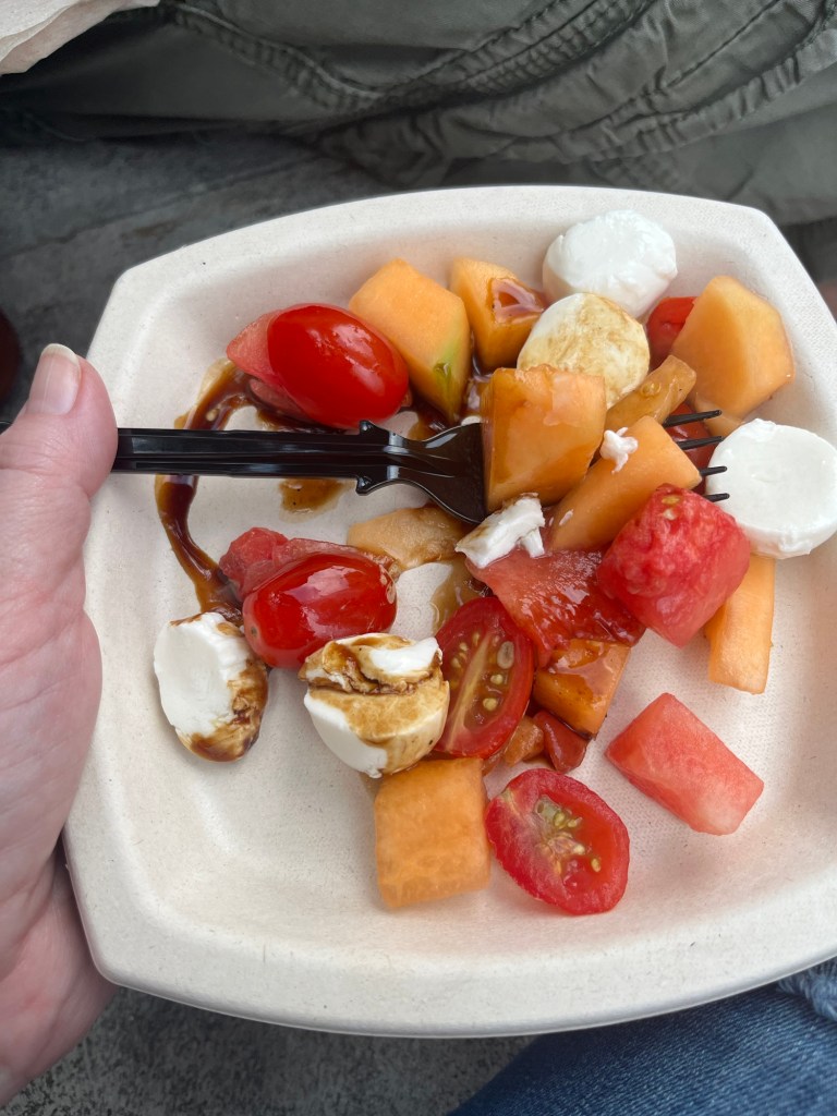 Insalata Arlechino: Grape tomato, seasonal melon, balsamic dressing. I love a good caprese, but, alas, the melon just doesn’t work in this. Grilled chicken kababs with garlic aoli — Not terrible, just meh. I’d save my stomach space for something better. Caprese Cocktail: The true loser of Flower and Garden 2025. Do you like drinking straight balsamic vinegar? If so, you’ll love it. Take the Insalata Arlechino and Vitamix it with an entire bottle of balsamic — and you get this. Fail.