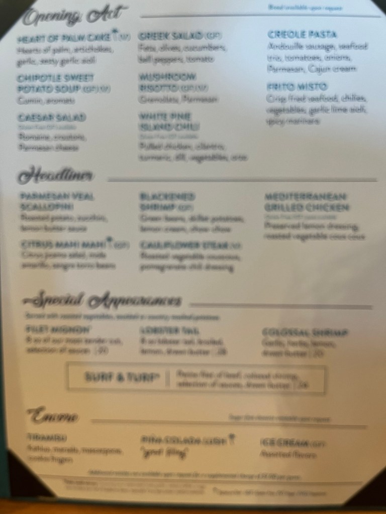 Margaritaville at Sea Islander MDR Menu w/ pics – Night 3